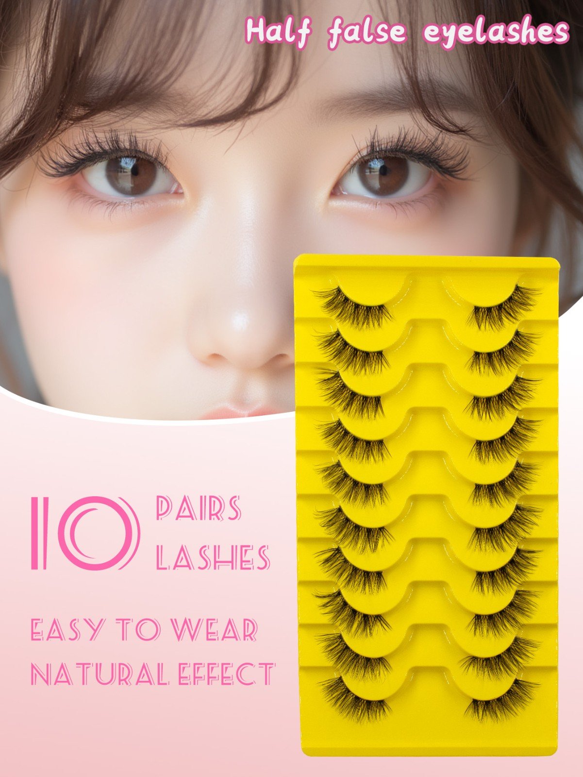 Designed for seamless blending, the ultra-thin, clear stem mimics your natural lash line, while the soft synthetic fibers add subtle volume and length. Perfect for daily wear or special occasions, these lashes are lightweight, comfortable, and reusable. The half-eye style enhances the outer corners of your eyes for an effortless "wake-up" effect. They’re ideal for beginners and pros alike.