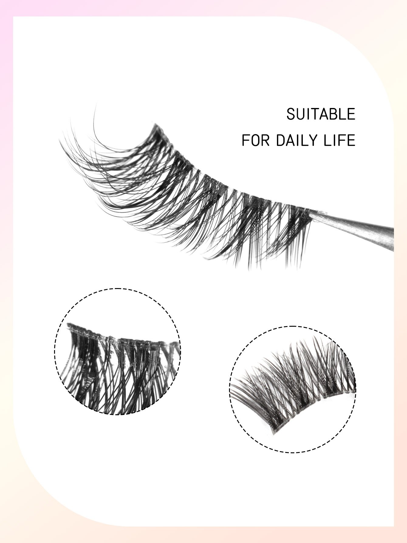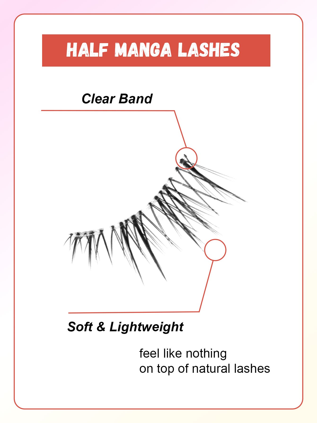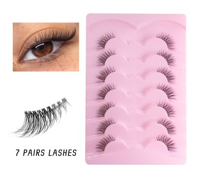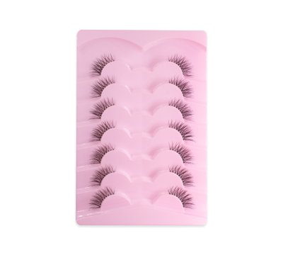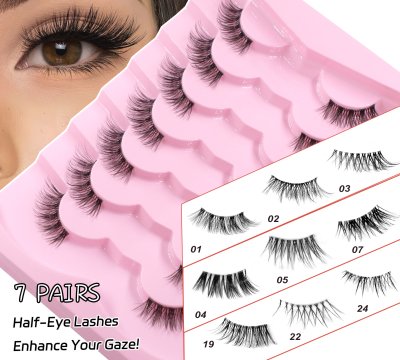 Achieve a natural, wide-eyed look with our transparent-stem half-eye false lashes. Designed for seamless blending, the invisible clear band mimics the appearance of real lash lines, while the soft, lightweight synthetic fibers add subtle volume and length. Perfect for daily wear or special occasions, these lashes feature a half-eye shape that enhances the outer corners for an effortless "wake-up-and-go" effect.