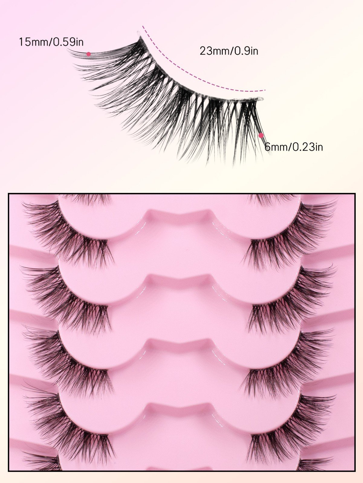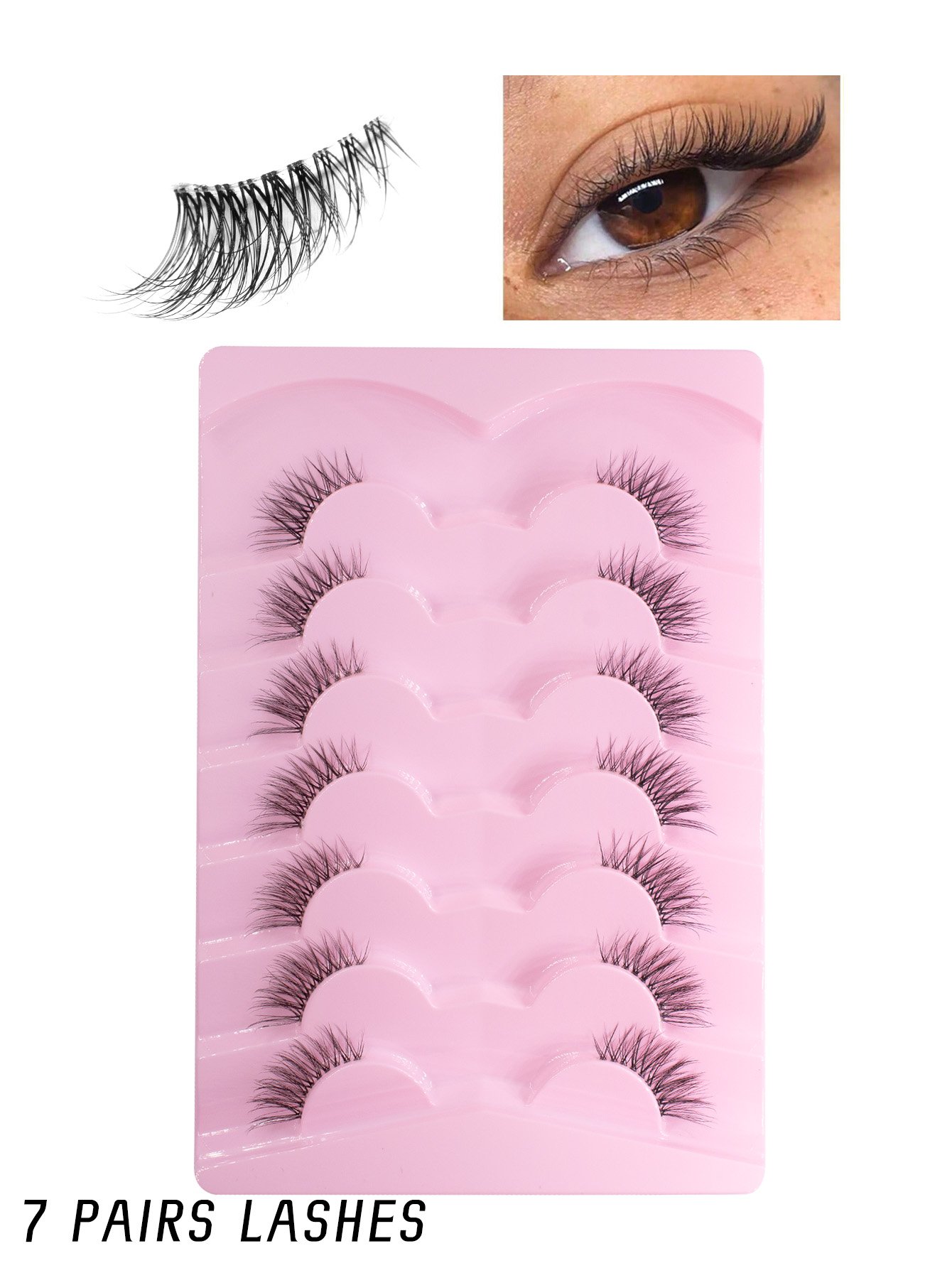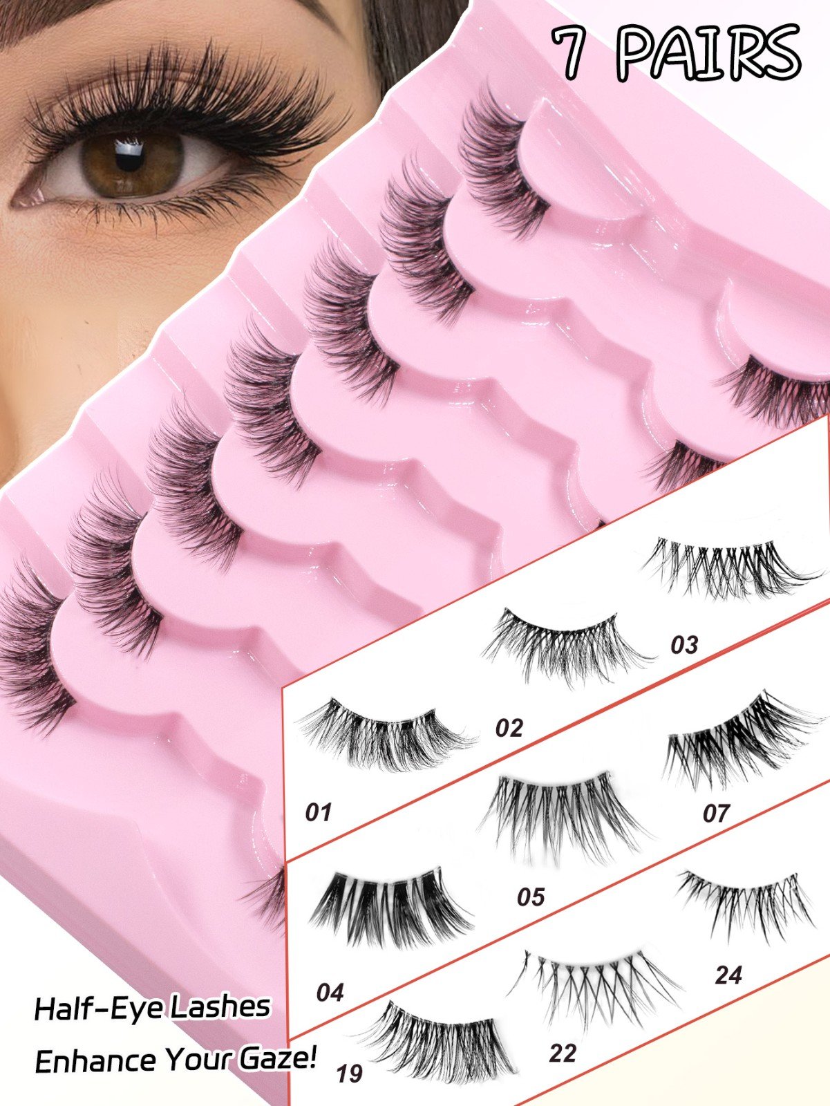 Achieve a natural, wide-eyed look with our transparent-stem half-eye false lashes. Designed for seamless blending, the invisible clear band mimics the appearance of real lash lines, while the soft, lightweight synthetic fibers add subtle volume and length. Perfect for daily wear or special occasions, these lashes feature a half-eye shape that enhances the outer corners for an effortless "wake-up-and-go" effect.