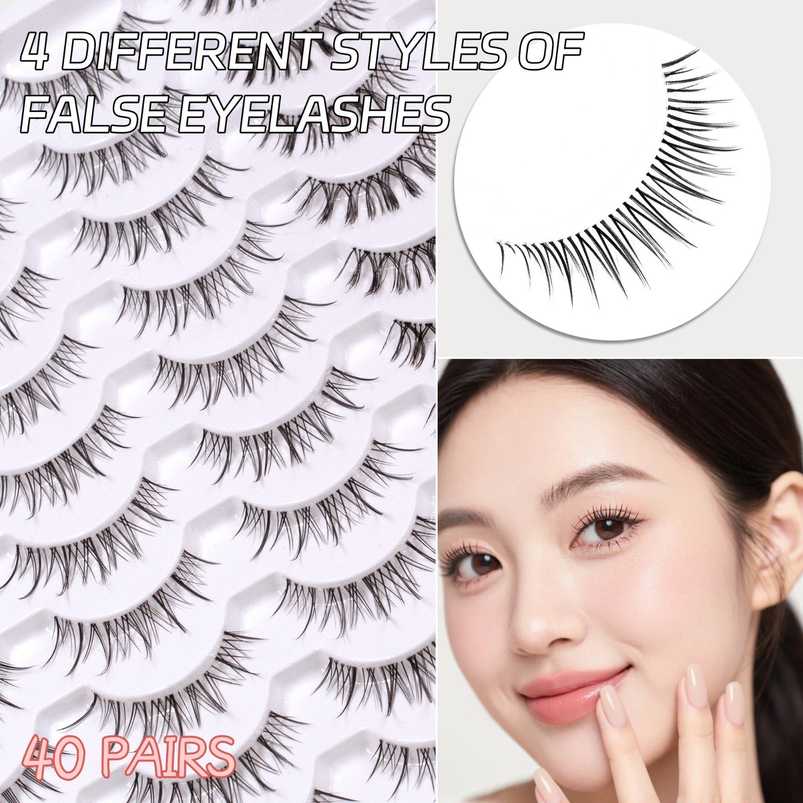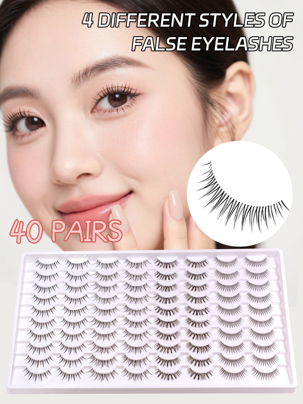40-Pair Mixed Style Eyelash Set – 4 Different Styles (10 Pairs Each)